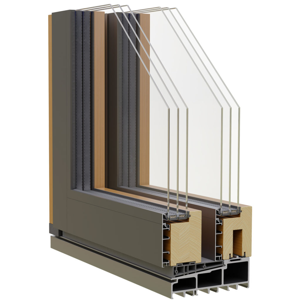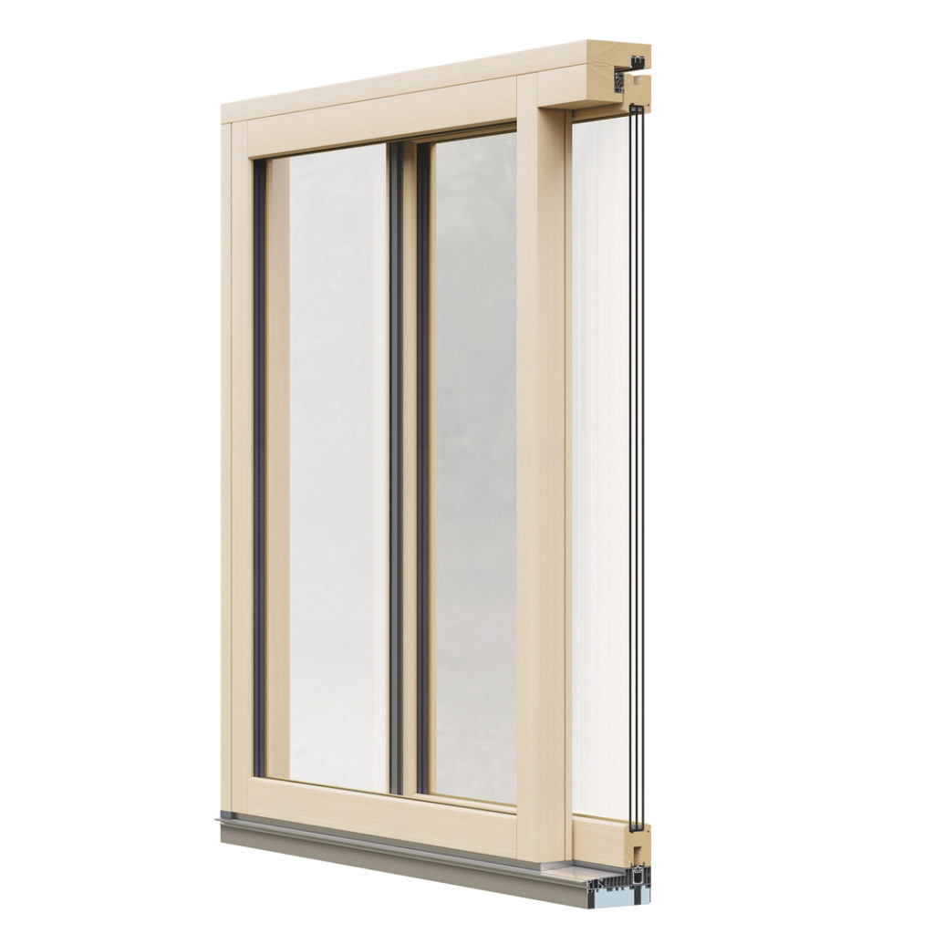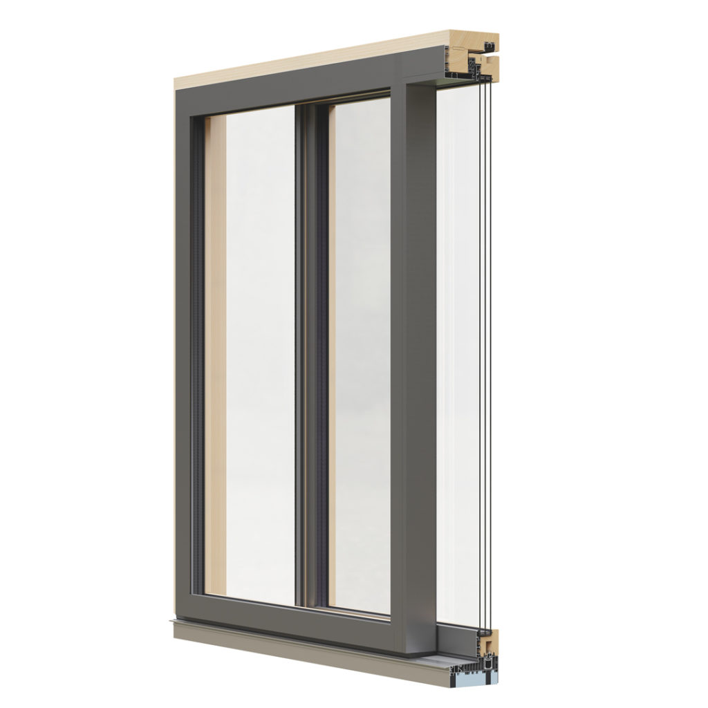 Plus de lumière avec notre nouveau système de coulissante à levage Bois-Métal PLUS qui comporte une très grande part de verre, avec une partie fixe vitrée directement dans le cadre. Une impression de légèreté sans égale.