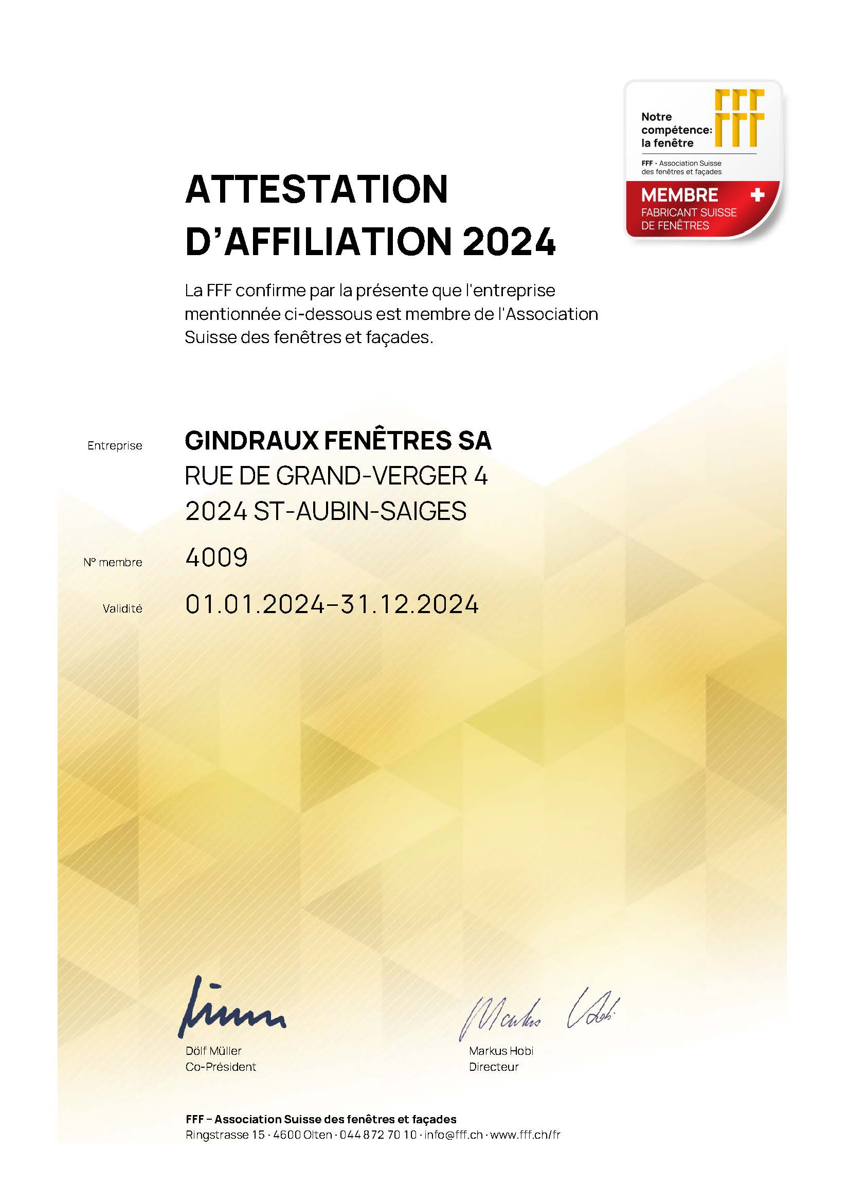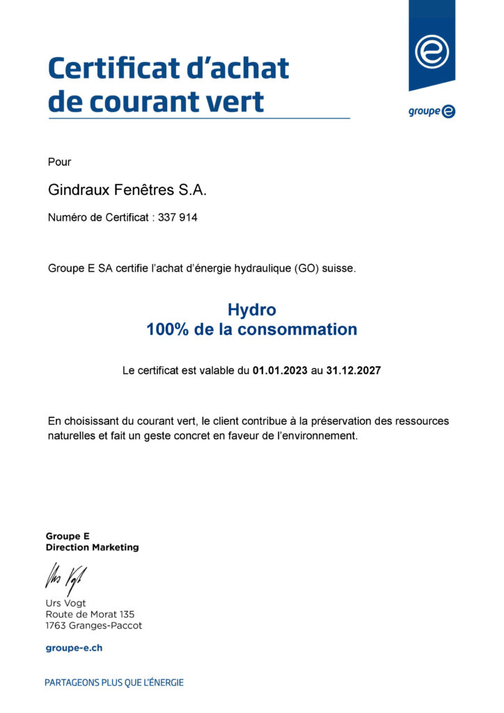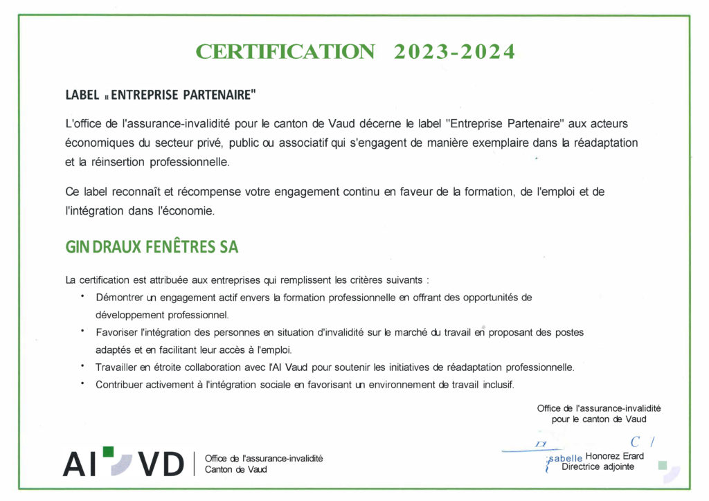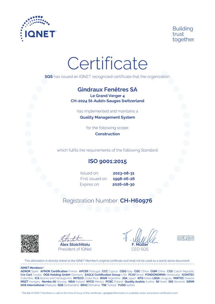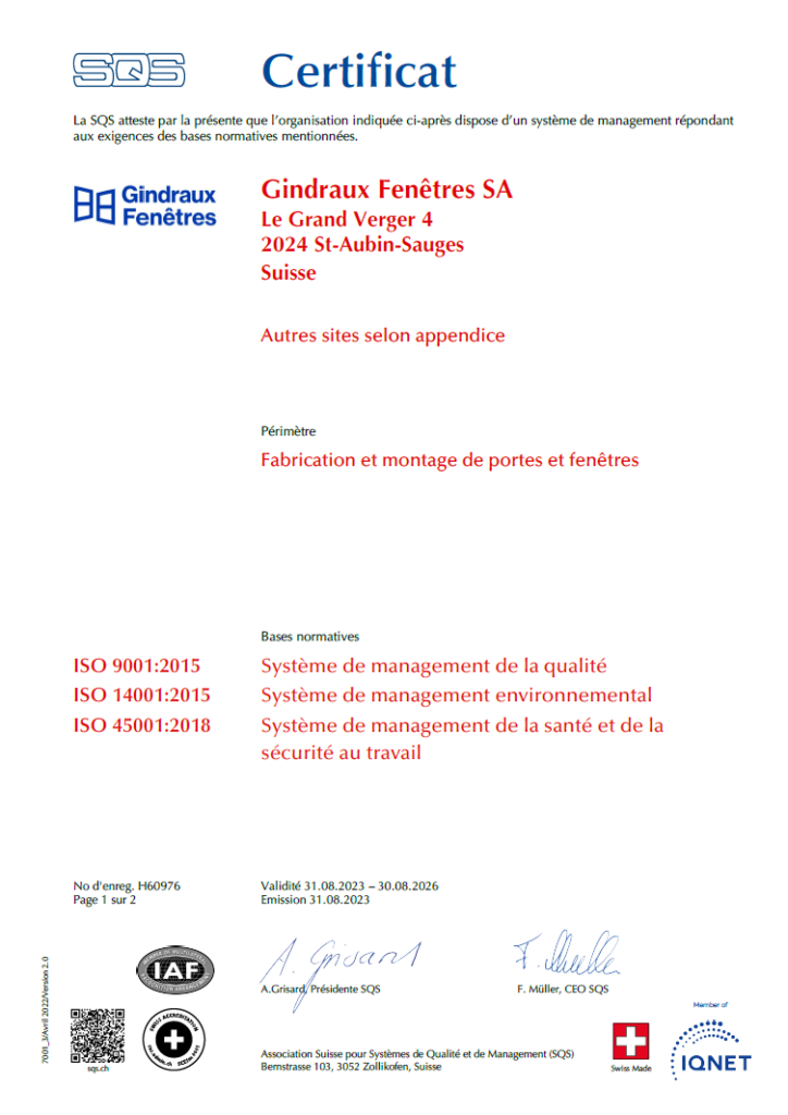 Gindraux Fenêtrier est le 1er fabricant de fenêtres de Suisse romande à être certifié dans les 3 domaines: