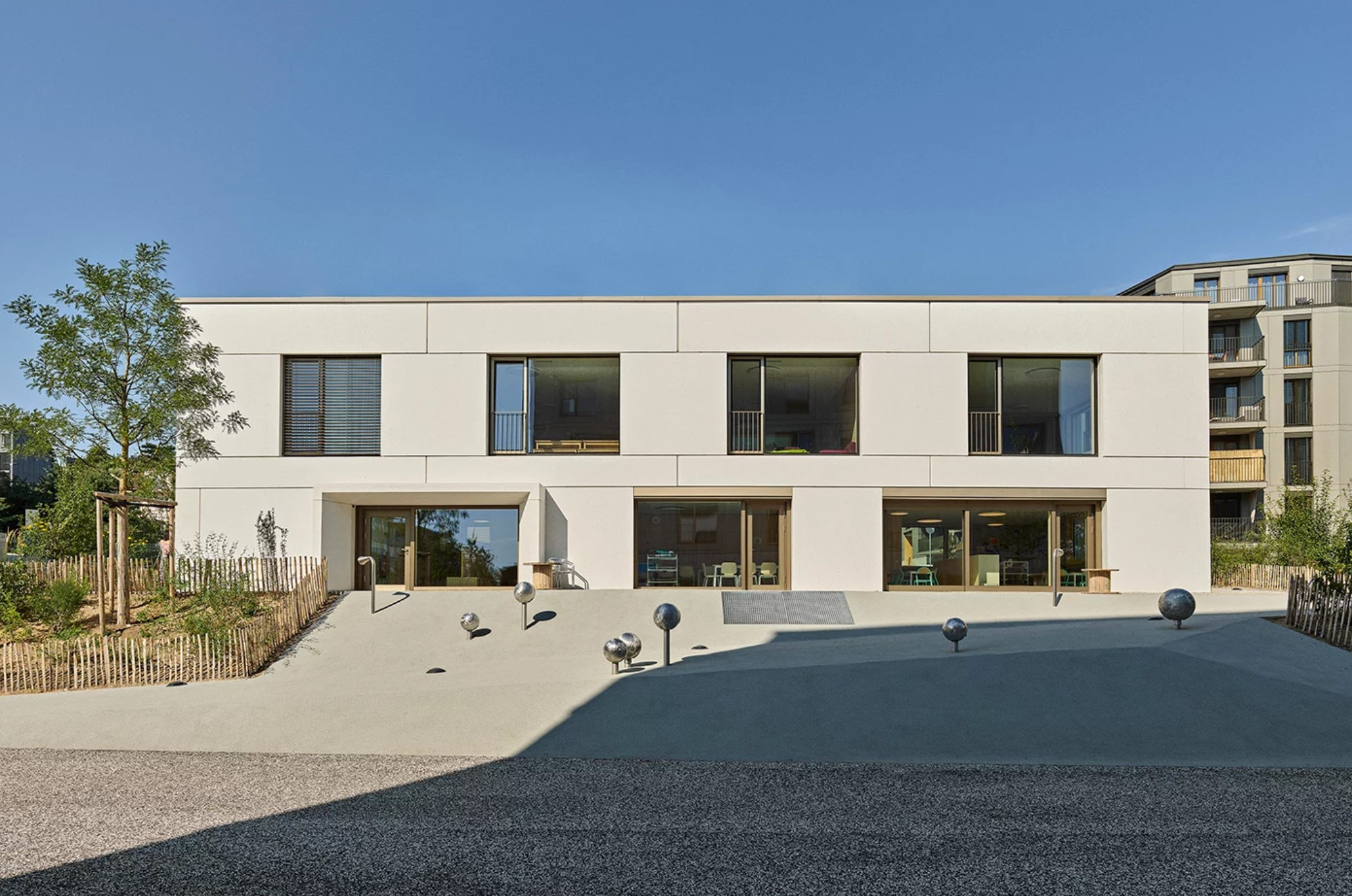 Construction dans le respect des exigences Minergie-Eco d’un bâtiment de l’Accueil pour Enfants en Milieu Scolaire.