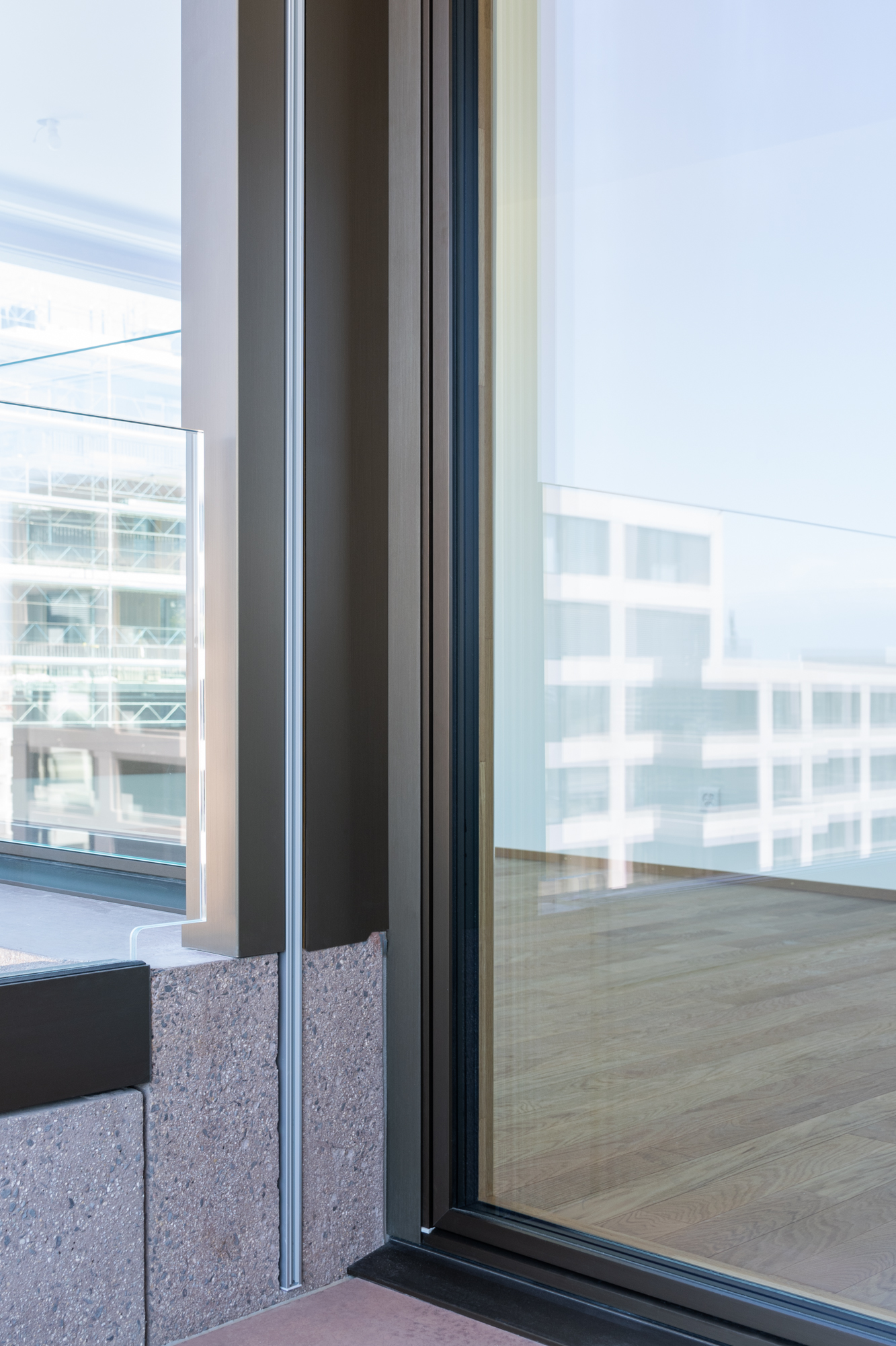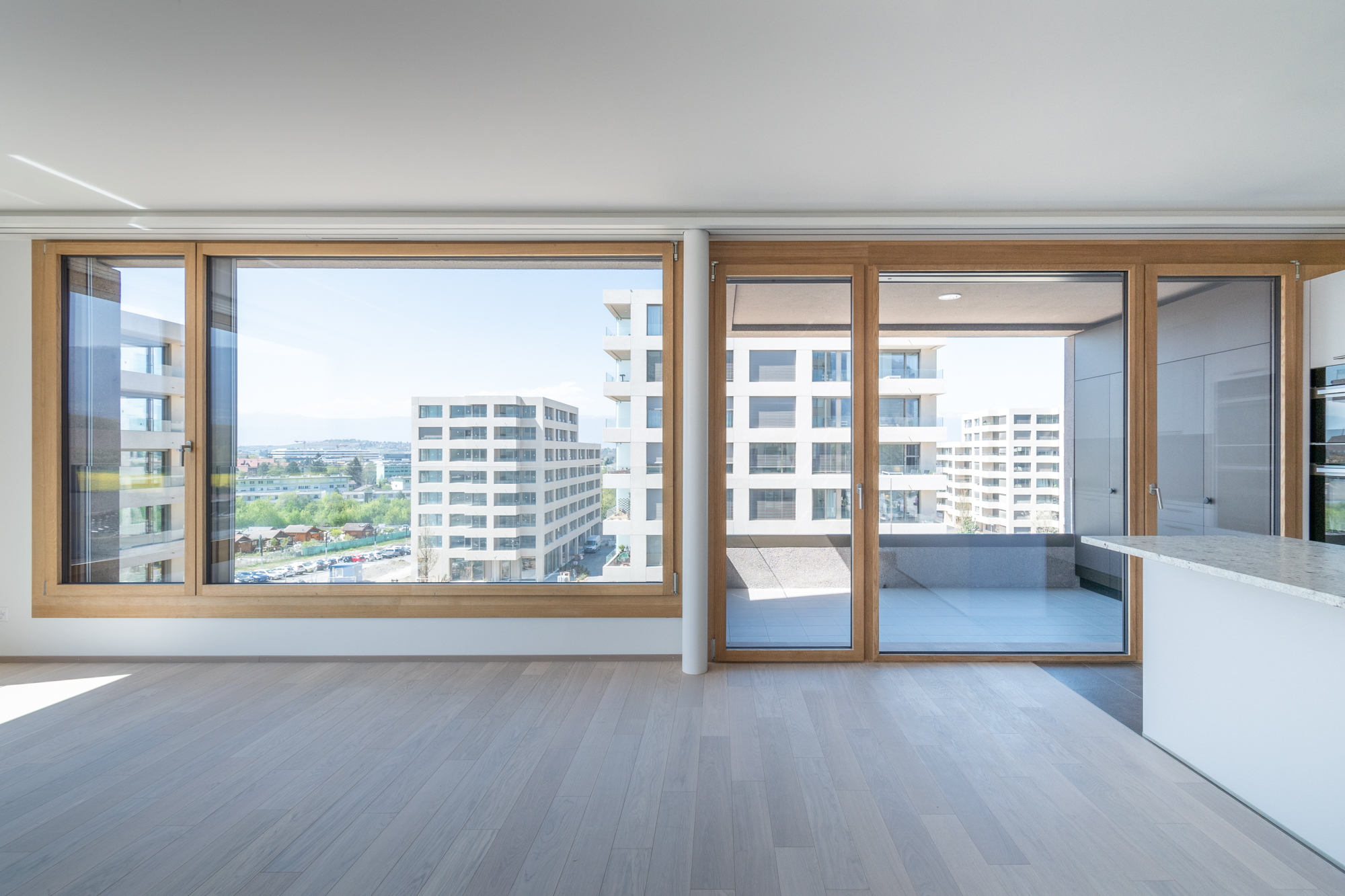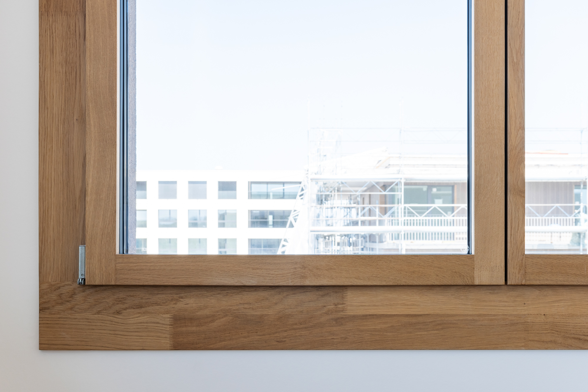 Fenêtres bois-métal en chêne abouté huilé incolore et aluminium extérieur en éloxé Colinal.
